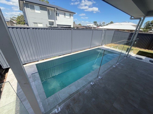 This tight backyard in Boondall presented a classic challenge—limited space with big desires for a proper pool. We pushed the boundaries to fit the largest possible design, carefully maximising every inch while removing the boundary fence for excavation and material access during construction. The end result is a sleek, substantial pool that feels generous despite the constraints, blending seamlessly into the compact outdoor area for year-round enjoyment.